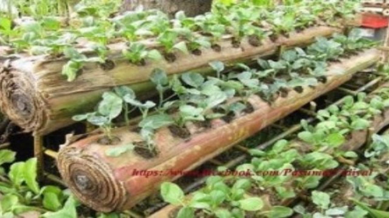 இவற்றையெல்லாம் முயற்சித்த மக்கள் “வாழைமரத்தின் தண்டு பகுதியிலும் தோட்டம்” வளர்த்திருக்கிறார்கள்.