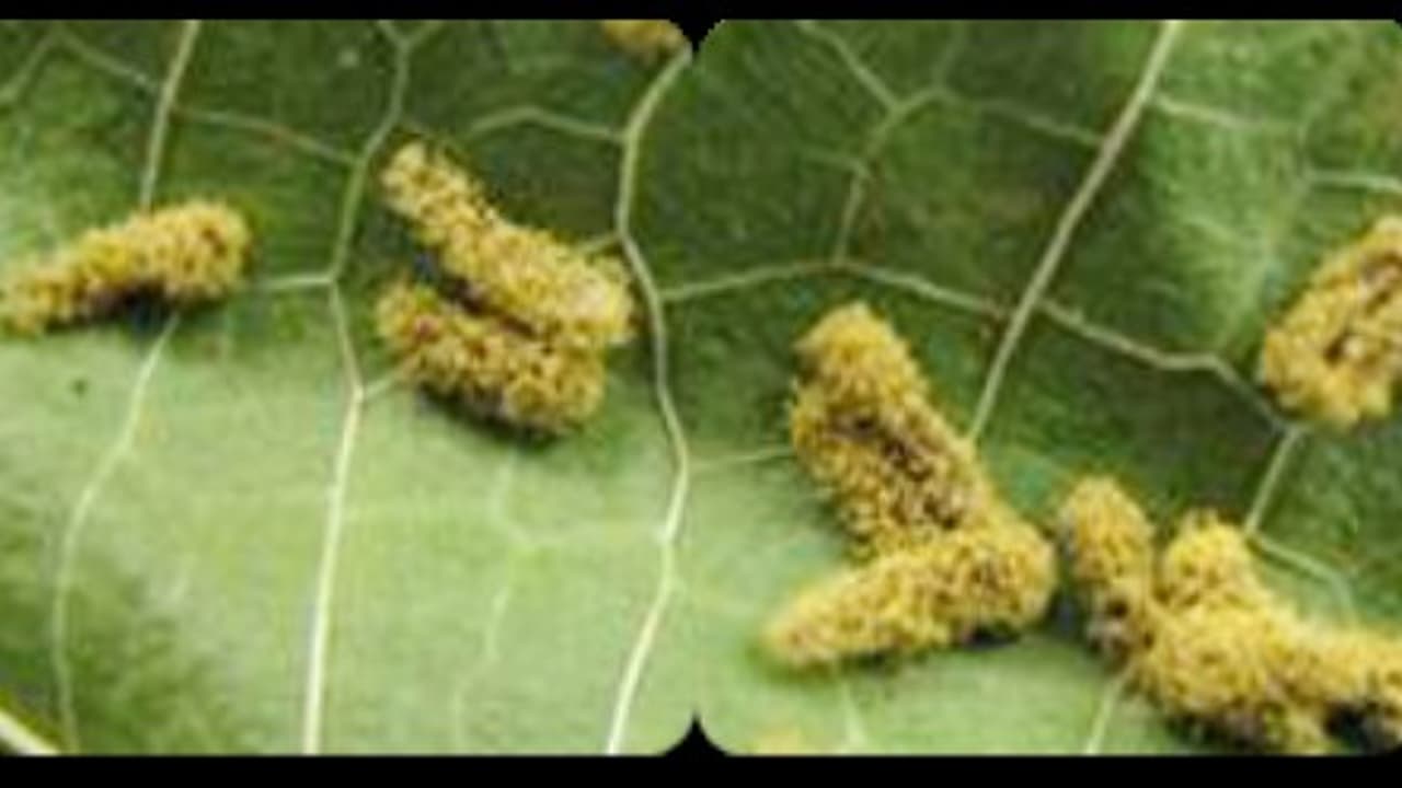 பேசிலஸ் துரிஞ்சியன்சிஸ் கிருமி மூலம் தாக்குதல் ஏற்படின் தலை கொக்கி வடிவத்தில் வளைந்தும் இறப்பிற்குப் பின்னர் தோல் கறுத்தும் வறண்டும் காணப்படும்.