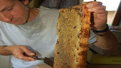 பெட்டியில் வைக்கப்பட்டுள்ள 5 சட்டங்களையும் தனித்தனியாக வெளியே எடுத்து, அடையிலுள்ள தேனை, அது சேதமாகாத வகையில் பிழிந்தெடுக்க வேண்டும். தேனை பிழிய இயந்திரம் உள்ளது. அதை பயன்படுத்தலாம்.