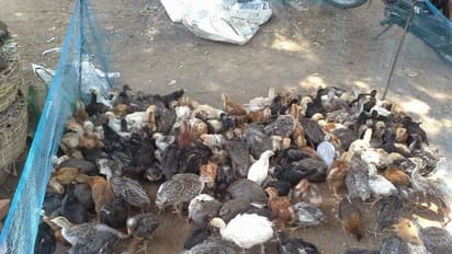 ** வலிப்பின் காரணமாகக் கோழிகளின் கால்களும் இறக்கைகளும் நீட்டிக்கொண்டு இருக்கும்.