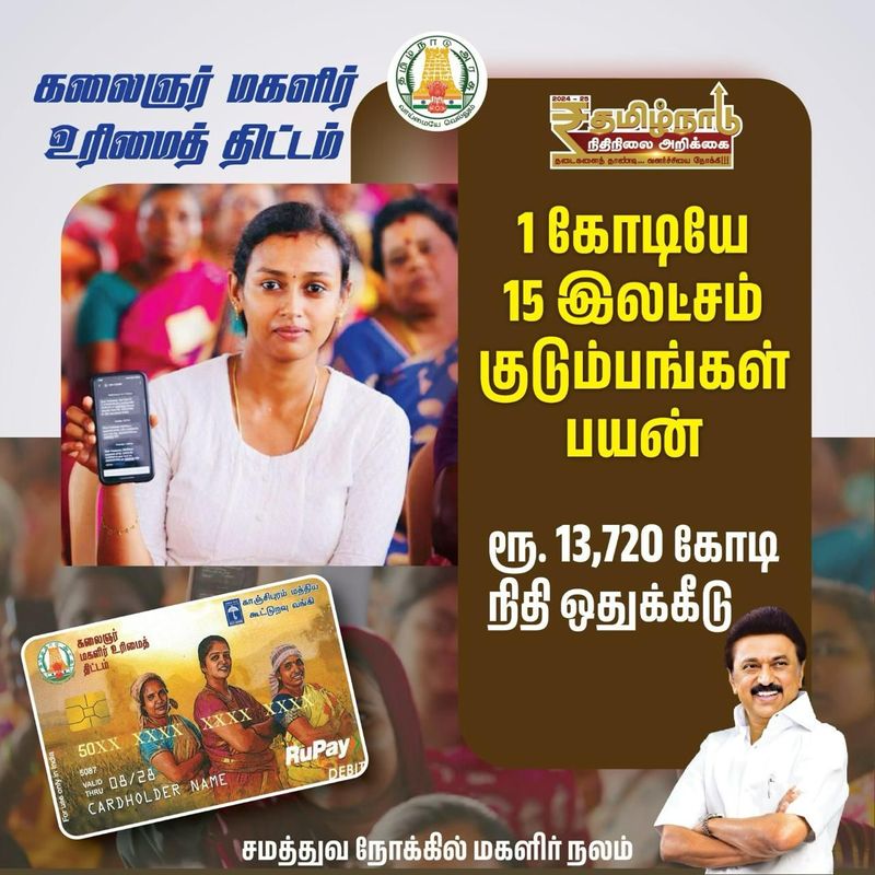 அரசுப் பள்ளி மாணவர்களை சாதனையாளர்களாக மாற்ற தமிழ் புதல்வன் திட்டம் அறிமுகம். இத்திட்டத்தின் கீழ் 6 முதல் 12 வகுப்புகள் வரை அரசுப் பள்ளிகளில் பயின்று கல்லூகளில் சேரும் மாணவர்களுக்கும் மாதம் ரூ.1000 ஊக்கத்தொகை வங்கிக் கணக்கில் செலுத்தப்படும்.