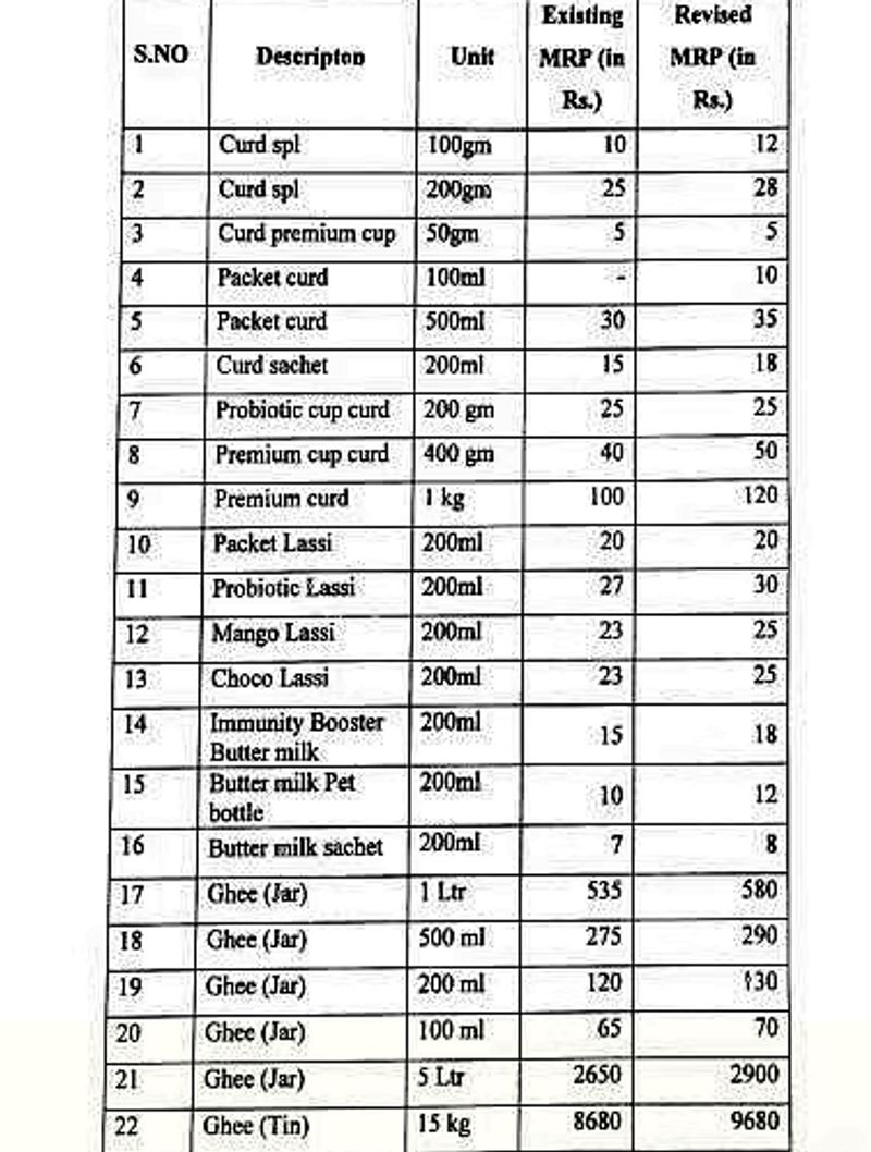 இது தவிர மோர் 200மில்லி 10ரூபாயிலிருந்து ரூ12 ஆகவும், இம்யூனிட்டி பட்டர்மில்ஸ் ரூ.18ஆகவும் அதிகரி்த்துள்ளது.லஸி விலையு 200மில்லி ரூ.3 உயர்ந்துள்ளது.