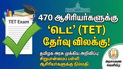 இந்தச் சூழலில் தான் தமிழக அரசு ஒரு முக்கிய முடிவை எடுத்துள்ளது. அரசு உதவி பெறும் சிறுபான்மைப் பள்ளிகளில் (Government-aided Minority Schools) பணிபுரியும் 470 ஆசிரியர்களுக்கு ஆசிரியர் தகுதித் தேர்வில் (TET) தேர்ச்சி பெறுவதிலிருந்து விலக்கு அளித்து தமிழக அரசு அதிரடி உத்தரவைப் பிறப்பித்துள்ளது. நீண்ட நாட்களாக வேலை உறுதி செய்யப்படாமல் தவித்த ஆசிரியர்களுக்கு இது ஒரு வரப்பிரசாதமாக அமைந்துள்ளது.
