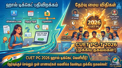 விண்ணப்பதாரர்கள் nta.ac.in அல்லது cuet.nta.nic.in என்ற இணையதளத்திற்குச் சென்று 'CUET PG 2026 Admit Card' என்ற லிங்க்கை கிளிக் செய்ய வேண்டும். அங்கு கேட்கப்படும் விவரங்களை உள்ளிட்டவுடன் உங்கள் ஹால் டிக்கெட் திரையில் தோன்றும். தேர்வுக்குச் செல்வதற்கு முன்னதாக அதில் உள்ள புகைப்படம், கையெழுத்து மற்றும் தேர்வு மைய முகவரி சரியாக உள்ளதா என்பதை உறுதிப்படுத்திக் கொள்வது அவசியம்.