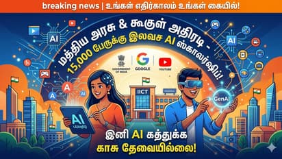 குறிப்பாக, கூகுளின் 'கேரியர் சர்டிபிகேட்ஸ்' மற்றும் கூகுள் கிளவுட் மூலம் அடிப்படை AI கருத்துக்கள், பொறுப்பான AI பயன்பாடு மற்றும் உருவாக்கப்படும் AI (Generative AI) போன்ற நவீன நுணுக்கங்கள் கற்றுக் கொடுக்கப்படும்.