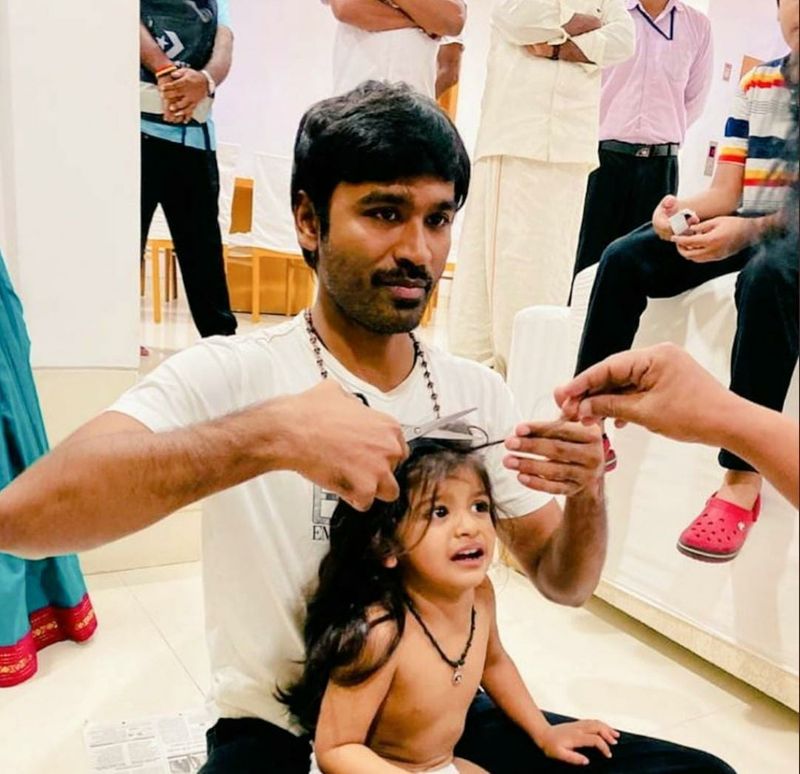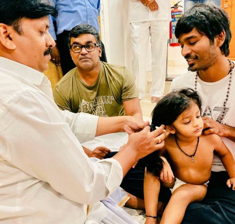 அங்கு சகோதரி மகள் ஒருவருக்கு தாய் மாமன் என்ற முறையில் தனுஷுன் மடியில் உட்கார வைத்து மொட்டை அடித்துள்ளனர். அப்போது குழந்தைக்கு தாய் மாமன் தனுஷ் முதல் முடி எடுத்துள்ளார், அவரது அருகில் இயக்குநர் செல்வராகவன் அமர்ந்திருக்கிறார். சோசியல் மீடியாவில் வைரலாகி வரும் புகைப்படங்கள் இதோ...
