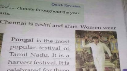 பொங்கல் பண்டிகையைப் பற்றிய அந்த வரியில் வேட்டி சட்டைதான் தமிழர்களின் பாரம்பரிய உடை என்று குறிப்பிடப்பட்டுள்ளது.