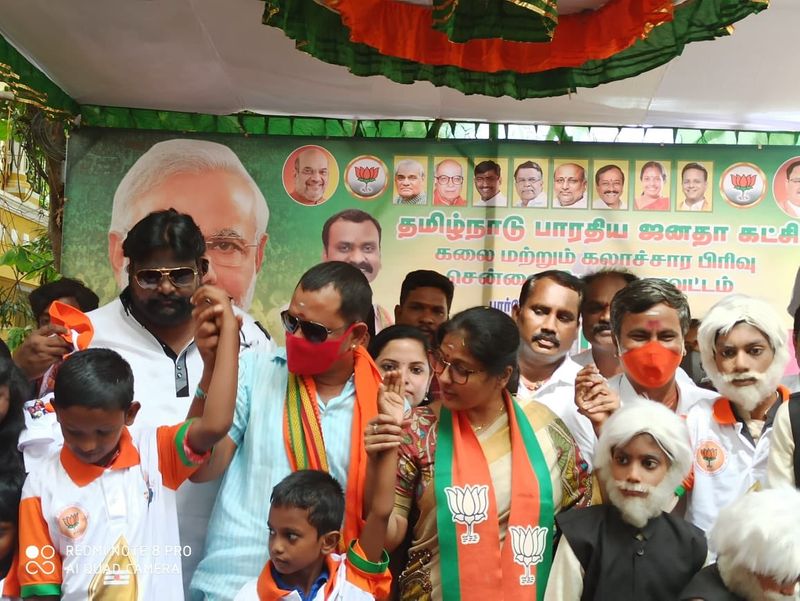 இந்நிலையில் நடிகையும், பாஜகவின் கலை மற்றும் கலாச்சார பிரிவின் மாநில தலைவியுமான காயத்ரி ரகுராம் புதிய டி-சர்ட் ஒன்றை அறிமுகப்படுத்தியுள்ளார். அதில் தமிழ் எங்கள் வேலன் ஹிந்தி நம்ம தோழன் வாசகம் அச்சிடப்பட்டுள்ளது. அத்துடன் பிரதமர் மோடி புகைப்படத்துடன் திருவள்ளுவர், பாரதியார் படங்கள் அச்சிடப்பட்டுள்ளன. இந்த டி-சர்ட் பிரதமர் மோடியின் பிறந்தநாளை முன்னிட்டு தமிழக பாஜக தலைவர் எல்.முருகன் தலைமையில் நடைபெற்ற நிகழ்ச்சியில் நேற்று வெளியிடப்பட்டுள்ளது.
