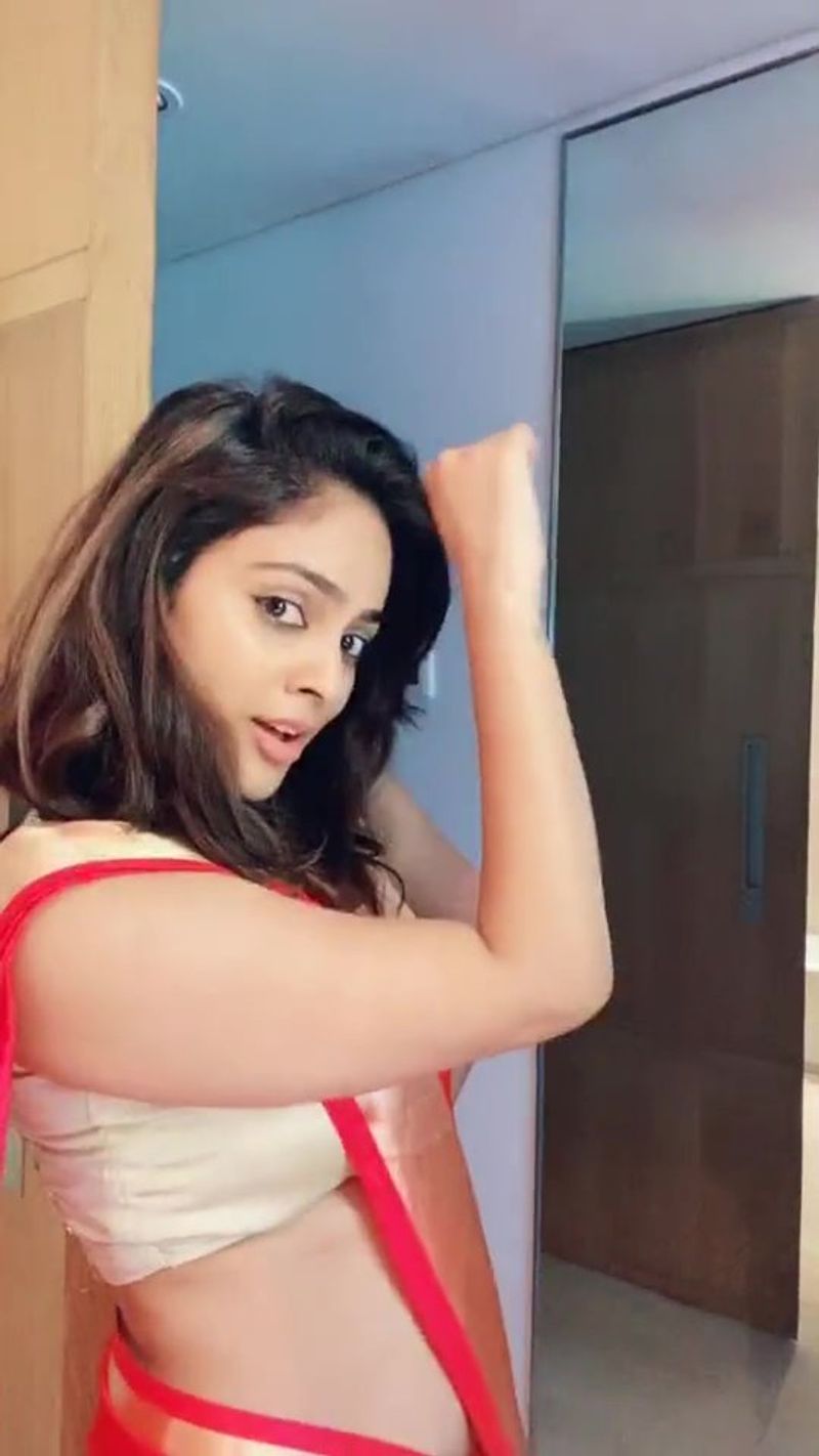 இந்நிலையில் சமீபத்தில் சிவப்பு நிற புடவையில் செக்ஸி போஸ் கொடுத்துள்ள நந்திதாவின் புகைப்படங்கள் சோசியல் மீடியாவில் வைரலானது. இடுப்பழகி ரம்யா பாண்டியனுக்கு போட்டியாக, தனது இடையழகை காட்டி கவர்ச்சியாக போட்டோ ஷூட் நடத்தியிருந்தார் நந்திதா. தற்போது அதே சிவப்பு நிற புடவையில் செம்ம கிளாமராக நந்திதா செய்துள்ள டிக்டாக் வீடியோ வெற லெவலில் வைரலாகி வருகிறது.