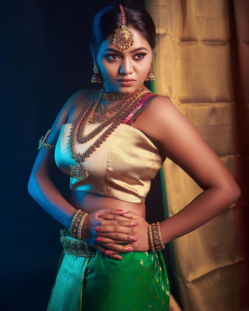 கோல்டன் கலர் ஸ்லீவ் லெஸ் டாப், பச்சை கலர் பாவாடையில் அழகான நகைகள் மற்றும் அளவான மேக்கப்பில் தேவதை போல் ஜொலிக்கும் அந்த போட்டோ சோசியல் மீடியாவில் வைரலாகி வருகிறது. எப்போதுமே கவர்ச்சியில் எல்லை தாண்டி குதிக்கும் ஷாலு ஷம்மு இந்த முறை காட்டியிருக்கும் அளவான கவர்ச்சியை பார்த்து ரசிகர்கள் லைக்குகளை வாரிக்குவிக்கின்றனர்.
