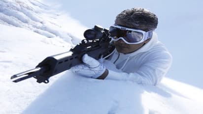 மேலும் எதிரிகள் கண்ணில் படாமல் இருக்க முழு வெள்ளை நிற உடையை போட்டுள்ளார்.