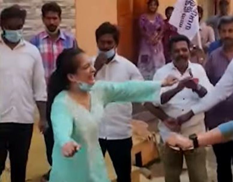 கமல்ஹாசனின் மகளும் நடிகையுமான அக்ஷரா ஹாசன், கையில் டார்ச் லைட்டுடன் கோவை தெற்கு தொகுதியில் வலம் வந்து சுஹாசினியும், சேர்த்து பிரச்சாரம் செய்து வருகிறார். மேளதாளம் முழங்க வந்த இவர்கள், இசைக்கு ஏற்ற வாறு குத்தாட்டமும் போட்டனர். முதலில், அனைவர் மத்தியிலும் ஆட தயங்கிய அக்ஷரா பின்னர் வெறித்தனமாக செம்ம குத்து குத்தினார். கூடவே சுகாசினியும் கையில் டார்ச் லைட்டை வைத்து கொண்டு வாக்கு சேகரித்தவாறு டான்ஸ் ஆடினார். மேலும் இவர்களால் உச்சகமடைந்த பெண்கள் பலர் ஆட்டம் போட்டனர்.