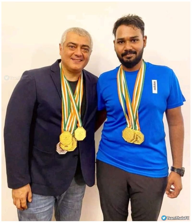 கடந்த ஆண்டு டெல்லியில் நடைபெற்ற துப்பாக்கிச் சுடுதல் போட்டியில் தல அஜித் கலந்துகொண்டு டாப் 10 இடங்களுக்குள் வந்தார் என்பது அனைவரும் அறிந்தது தான். இதை தொடர்ந்து, தமிழ்நாடு 46-வது துப்பாக்கி சுடுதல் போட்டியில் கலந்து கொள்ள, ஒரு வாரமாக தீவிர பயிற்சி எடுத்து வந்த அஜித், 3 தங்க பதக்கம் உட்பட 4 வெள்ளிப் பதக்கங்களையும் வென்றுள்ளார்.