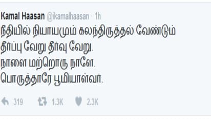 அதிமுக பொதுச்செயலாளர் சசிகலாவுக்கு எதிரான சொத்துக்குவிப்பு வழக்கு மேல்முறையீட்டு மனு மீதான தீர்ப்பு குறித்து, நடிகர் கமல்ஹாசன் டுவிட்டரில் கருத்து தெரிவித்துள்ளார்.