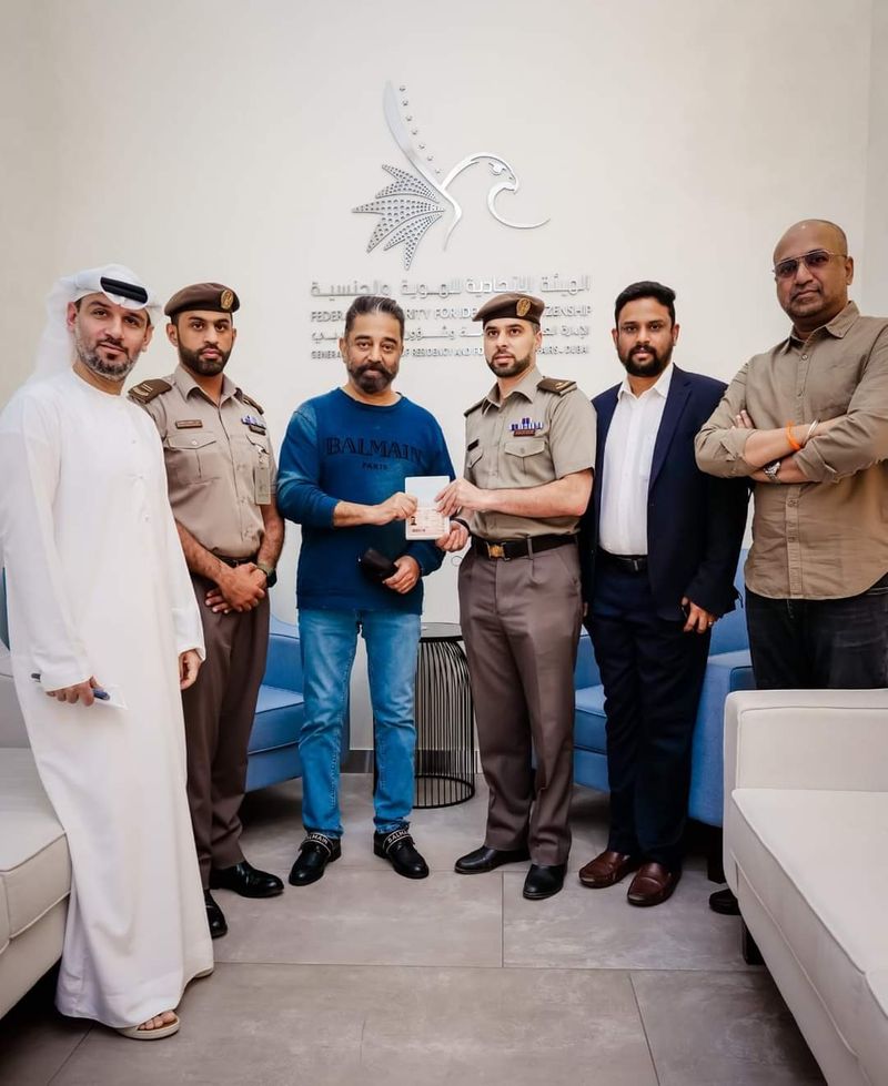 சமீபத்தில் காலமாக முன்னணி நடிகர் - நடிகைகள் பலர் தொடர்ந்து ஐக்கிய அரபு எமிரேட்ஸிலிருந்து கோல்டன்விசா பெற்று வருகிறார்கள் அந்த வகையில், ஏற்கனவே... மலையாள நடிகர்களான மம்முட்டி, மோகன்லால், விஜய் சேதுபதி, பார்த்திபன், வெங்கட் பிரபு, மீரா ஜாஸ்மின் போன்ற பலர் யுஏஇ அரசின் கோல்டன் விசா பெற்றனர். இவர்களை தொடர்ந்து கமல்ஹாசனும் கோல்டன் விசா பெற்றுள்ளார்.