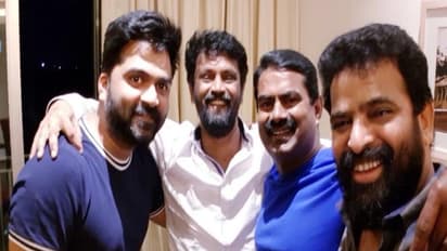 நடிகர் சிம்புவின் அண்மைக்கால லேட்டஸ்ட் படம் ஒன்று ட்விட்டரில் ட்ரெண்ட் ஆகி அசத்தி வருகிறது, பலரும் சிம்புவின் படத்தை சிம்பிளாக இருப்பதாகக் கூறி வைரலாக்கி வருகின்றனர். இந்தப் படத்தில், சிம்பு ஸ்லிம் ஆன உடற்கட்டுடன் புன்னகைத்தபடி இயக்குனர்களுடன் கூட்டணி போட்ட கோலத்தில் காட்சி தருகிறார். இயக்குனர் சேரன், இயக்குனர் சீமான், அமிர் ஆகியோருடன் சிம்பு உள்ள படம்தான் இப்போது ட்ரெண்ட் ஆகிவருகிறது.
