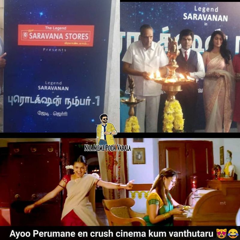 சூப்பர் ஸ்டார், தல, தளபதி அளவுக்கு முதல் பட பூஜையிலேயே கெத்து காட்ட ஆரம்பித்துவிட்டார் நம்ம சரவணன் அருள், ஆமா பின்ன லெஜண்ட்னா சும்மாவா?, ஒரு விளம்பரம் இருக்கனும் இல்ல. ஏற்கெனவே அருள் விளம்பர படங்களில் நடிக்கிறத பார்த்த நெட்டிசன்கள், கடன் வாங்கியாவது உன் கடையில துணி வாங்குறேன் ராசா, விளம்பரம் மட்டும் நடிக்காத என மரண பங்கம் செய்து வந்தனர்.