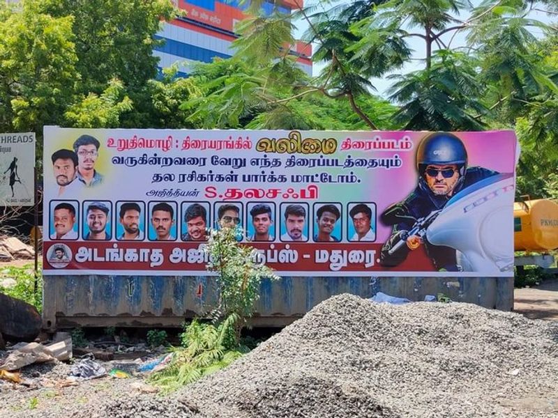 விஜய் ரசிகர்கள் இப்படி செய்தால் அஜித் ரசிகர்கள் சும்மா இருப்பார்களா? அஜித்தின் “வலிமை” திரைப்படம் ஓடிடியில் வெளியாக உள்ளதாக தகவல்கள் வெளியாக “வலிமை” திரைப்படம் தியேட்டரில் திரையிடப்படும் வரை வேறு எந்த படத்தையும் எந்த தளத்திலும் காண மாட்டோம் என உறுதிமொழியை ஏற்று அதை போஸ்டராக அடித்து ஒட்டினர். இப்படி இரண்டு ஹீரோக்களின் ரசிகர்களும் மாறி, மாறி மதுரை முழுவதும் போஸ்டர் ஒட்டி வந்த நிலையில், 3வது இவர்களுடன் சூர்யாவின் ரசிகர்களும் இணைந்துள்ளனர்.