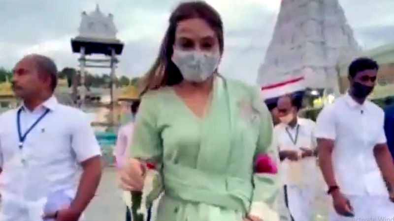 இந்நிலையில், சூப்பர் ஸ்டார் ரஜினிகாந்தின் மகள் சௌந்தர்யா, தன்னுடைய கணவர் விசாகன், மகன் வேத்துடன் திருப்பதி கோவிலில் சுவாமி தரிசனம் செய்துள்ளார். அதே போல், ரஜினிகாந்தின் மூத்தமகளான ஐஸ்வர்யா தனுஷும் திருப்பதி கோவிலில் சுவாமி தரிசனம் செய்துள்ளார். இவர்கள் இருவரது புகைப்படங்களும், வீடியோக்களும் தற்போது வைரலாக பரவி வருகிறது
