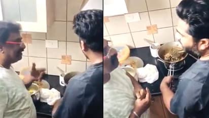 நடிகர் சிம்பு, ஒரு பக்கம் பிரியாணி செய்து கொண்டே... காமெடி நடிகரும் அவருடைய நண்பருமான விடிவி கணேஷை லெப்ட் - ரைட் வாங்கியுள்ள வீடியோ சிம்புவின் ரசிகர்களை, குறிப்பாக பெண் ரசிகர்களை செம்ம ஹாப்பி ஆக்கி உள்ளது.