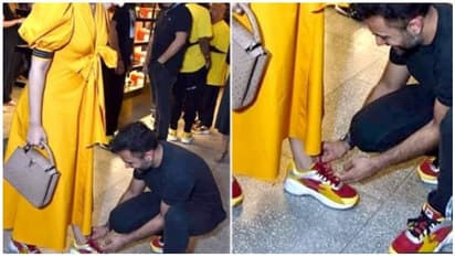 பாலிவுட் திரையுலகத்தில் முன்னணி நடிகையாக இருக்கும் சோனம் கபூர். நேற்று தன்னுடைய கணவருடன் கடைதிறப்பு விழா ஒன்றில் கலந்து கொண்டார். அப்போது, சோனம் கபூரின் ஷூ லேஸை, அவருடைய கணவர் ஆனந்த் அஹுஜா கட்டிவிட்டுள்ளார். இது குறித்த புகைப்படங்கள் வெளியாகி வைரலாகி வருகிறது.