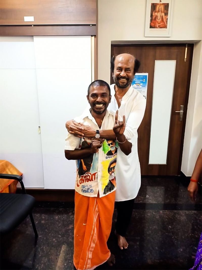 மேலும் நேரம் கிடைக்கும்போதெல்லாம் தன்னுடைய ரசிகர்களை சந்திப்பதை வழக்கமாக வைத்திருக்கிறார். அந்த வகையில் இவருடைய தீவிர ரசிகரான மதுரையை சேர்ந்த சுந்தர் என்பவரை சந்தித்துள்ளார். ஓவியரான சுந்தர் சூப்பர்ஸ்டார் தலைவரின் புகைப்படத்தை அவருக்கு பரிசாக கொடுத்து அசத்தியுள்ளார்.