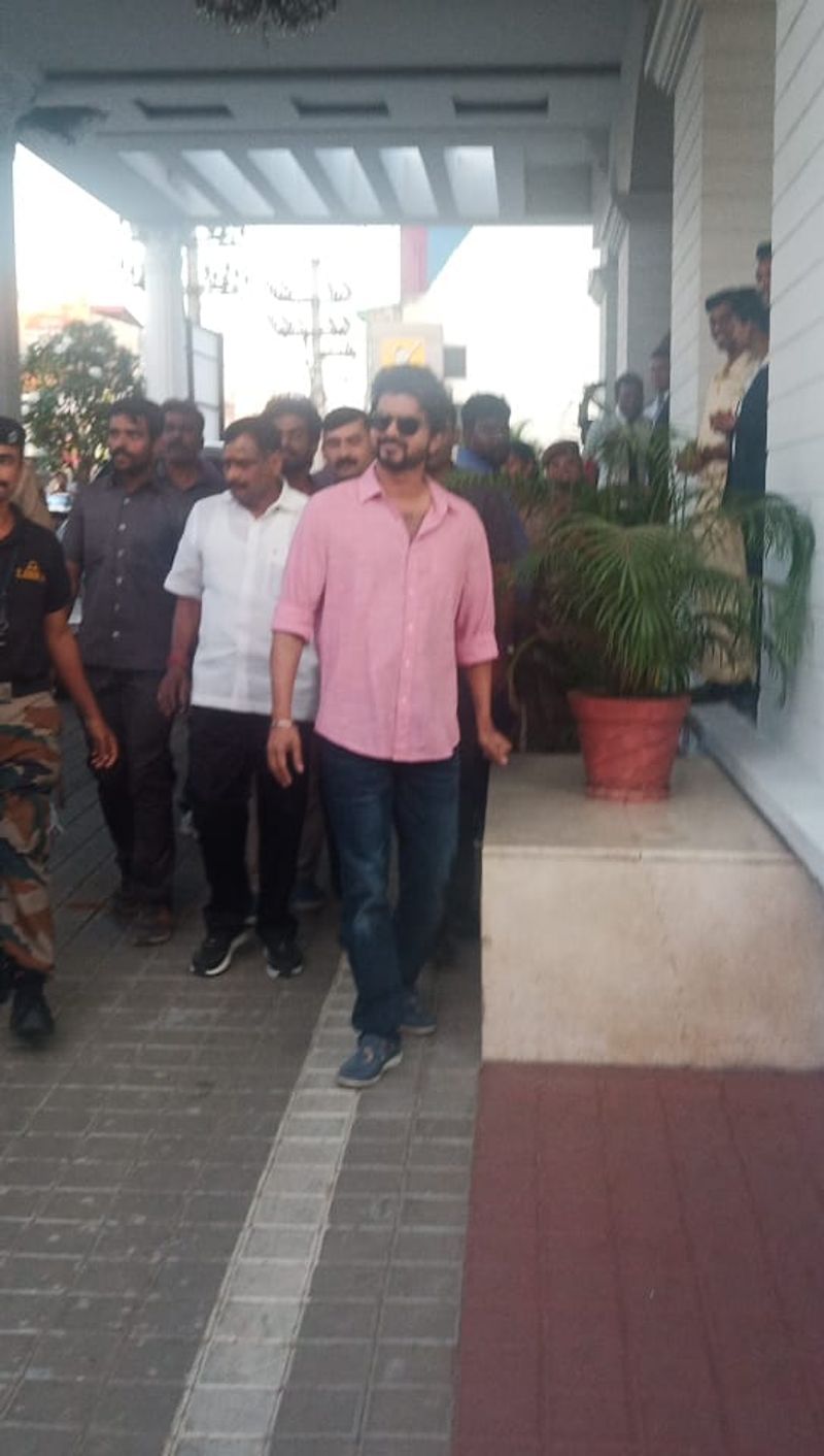 படப்பிடிப்புக்காக விஜய் சிமோகா வந்திருப்பதை அறிந்த ஆயிரக்கணக்கான தளபதி ரசிகர்கள், நட்சத்திர ஹோட்டலின் முன்பும், படப்பிடிப்பு தளம் அருகிலும் குவிந்தனர். அவர்களைப் பார்த்த விஜய் மகிழ்ச்சியுடன் கையசைத்து ரசிகர்களை உற்சாகப்படுத்தியுள்ளார். இந்த புகைப்படங்களும், வீடியோக்களும் சமூக வலைதளங்களில் வெளியாகி வைரலாகி வருகின்றன.