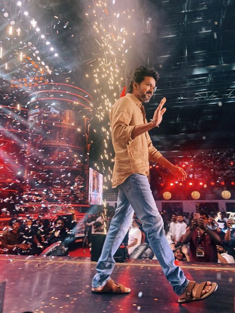 சற்று முன்னர் தளபதி விஜயும் 'லியோ' சக்ஸஸ் மீட்டுக்கு வருகை தந்தார். நிகழ்ச்சி துவங்கப்படுவதாக அறிவித்த 6 மணியில் இருந்தே எப்போது தளபதியின் தரிசனம் கிடைக்கும் என காத்திருந்த ரசிகர்கள், விஜய் உள்ளே... என்ட்ரி கொடுத்தபோது, அரங்கமே அதிர வைக்கும் அளவுக்கு கைகளை தட்டியும், தளபதி என கத்தியும் வரவேற்றனர். மேலும் இருபக்கமும் ஃபயர் தெறிக்க, டான்ஸர்ஸ் நடனமாடி தளபதியை செம்ம மாஸாக வரவேற்றனர். இதுகுறித்த வீடியோஸ் தற்போது வைரலாகி வருகிறது.