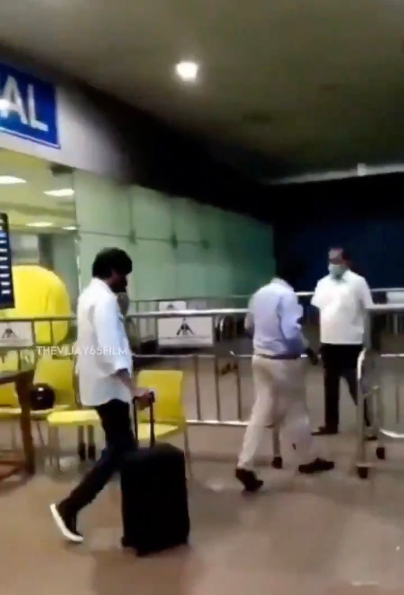 ஒட்டுமொத்த படக்குழுவும் சென்னை திரும்பிய நிலையில், ஜார்ஜியாவில் இருந்து தமிழகம் திரும்பிய விஜய் சென்னை விமான நிலையம் வந்தடைந்த வீடியோ சோசியல் மீடியாவில் வைரலாகி வருகிறது. கறுப்பு கலர் கூலிங் கிளாஸ், மாஸ்க் அணிந்து, தன்னை யார் என்றே ரசிகர்கள் அடையாளம் கண்டு கொள்ளாத படி விஜய் வேக, வேகமாக விமான நிலையத்தில் இருந்து தன்னுடைய காரை நோக்கி முன்னேறும் வீடியோவை சோசியல் மீடியாக்களில் விஜய் ரசிகர்கள் அதிக அளவில் ஷேர் செய்து வருகின்றனர். இதோ அந்த வீடியோ...
