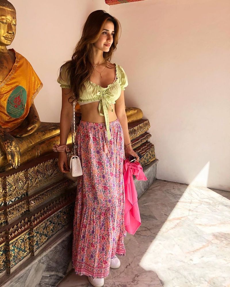 கவர்ச்சியில் திஷா காட்டிய தாராளத்தைக் கண்டு சொக்கிப்போன இளசுகள், புகைப்படத்துக்கு லைக்குகளை அள்ளி வீசி வருகின்றனர். முன்னதாக, புத்தர் கோயிலில் சிலைகளுக்கு முன்பு கவர்ச்சி உடையில் நின்று போஸ் கொடுத்த புகைப்படங்களையும் திஷா பதானி பகிர்ந்திருந்தார்.