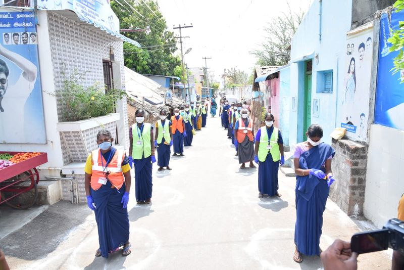 பணத்தை விட உயிர் காக்க உதவும் மனிதர்களே முக்கியம் என்பதை பறைசாற்றும் விதமாக தூய்மை பணியாளர்களுக்கு பண மாலை அணிவித்து காலில் விழுந்து மரியாதை செலுத்தினர்.