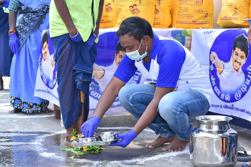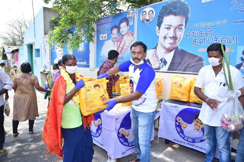 இந்த சமயத்தில் எங்க தளபதி கொடுக்கலைன்னா என்ன நாங்க இருக்கோம் என்ற ரீதியில் அவரது ரசிகர்கள் தீயாய் சேவை செய்து வருகின்றனர். மக்களுக்கு காய்கறி, அரிசி மூட்டை வழங்குவது, நமக்காக சேவையாற்றும் காவலர்களுக்கு உணவளிப்பது, தூய்மை பணியாளர்களுக்கு கையுறை, மாஸ்க் உடன் சேர்ந்து ஒரு மாத மளிகை பொருட்களையும் வழங்குவது என தங்களால் ஆன உதவிகளை செய்து வருகின்றனர்.