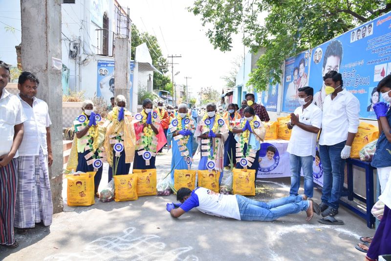 நாட்டு மக்களின் உயிரை காக்க தங்களை பணயம் வைத்து பாடும் தூய்மை பணியாளர்களை கெளரவிக்கும் விதமாக திருவண்ணாமலையில் உள்ள தூய்மை பணியாளர்களுக்கு விஜய் ரசிகர்கள் பாதபூஜை செய்துள்ளனர். அதுமட்டுமின்றி அவர்களது குடும்பத்திற்கு தேவையான காய்கறி, மளிகை பொருட்கள் உள்ளிட்டவற்றையும் வழங்கி மனதோடு சேர்த்து, வயிறையும் குளிர வைத்துள்ளனர்.