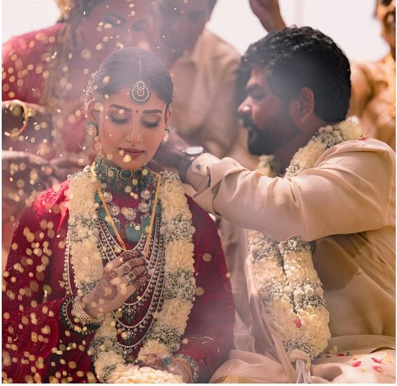இதில் குறைந்த எண்ணிக்கையிலான முக்கிய பிரபலங்களுக்கு மட்டும் அழைப்பு விடுக்கப்பட்டிருந்தது. அதில் சூப்பர் ஸ்டார் ரஜினிகாந்த், ஹிந்தி நடிகர் ஷாருக்கான் சரத்குமார், சிவகார்த்திகேயன் இயக்குனர் மணிரத்தினம் போன்ற நடிகர்கள் கலந்து கொண்டனர். இன்று காலை 10.20 மணிக்கு நயன்தாரா கழுத்தில் விக்னேஷ் சிவன் தாலி கட்டினார். நயன்தாரா விக்னேஷ் சிவனை கடந்த ஆறு ஆண்டுகளுக்கு மேலாக காதலித்து வந்த நிலையில் இன்று அவரின் கரம் பிடித்தனர். இந்நிலையில் திருமணத்தை முன்னிட்டு கோவை, சென்னை, திருச்சி, திண்டுக்கல், திருநெல்வேலி என தமிழகத்தில் உள்ள ஆதரவற்ற இல்லங்களில் இருக்கும் ஒரு லட்சம் பேருக்கு மத்திய உணவு விருது அளிக்கப்பட்டது. சைவம் அசைவம் என இரண்டு வகையான உணவு வழங்கப்பட்டது.