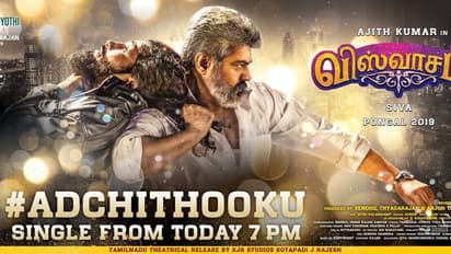 இந்நிலையில், தற்போது இப்படத்தின் பர்ஸ்ட் சிங்கிள் டிராக் இன்று மாலை 7 மணிக்கு வெளியிட இருப்பதாக விசுவாசம் பட தயாரிப்பு நிறுவனமான சத்யஜோதி பிலிம்ஸ் தனது ட்விட்டர் பக்கத்தில் அறிவித்துள்ளது. தல படத்தின் அப்டேட்டுக்காக வெறித்தனமாக காத்திருந்த ரசிகர்களுக்கு "அட்ச்சி தூக்கு" என்ற பாடலை வெளியிட உள்ளனர். சிங்கிள் டிராக் குறித்த அறிவிப்பு மோஷன் போஸ்டரை போலவே சத்தமில்லாமல் வெளியாகியிருக்கிறது.