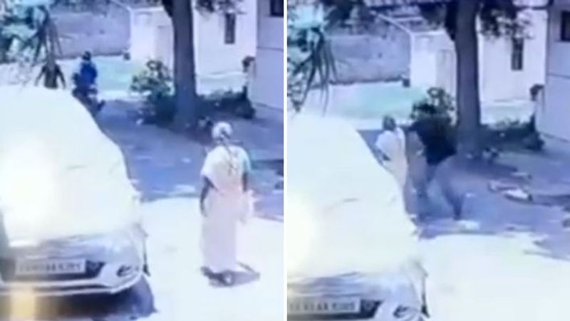 இவர் இதே பகுதியில் உள்ள மருத்துவர் ஒருவர் வீட்டில் சமையல் வேலை செய்து வருகிறார். நேற்று காலை 11.45 மணியளவில், வழக்கம் போல் வீட்டு வேலைகளை முடித்துக் கொண்டு தனது வீட்டிற்கு நடந்து சென்று கொண்டிருந்தார். அப்போது ஒரு இளைஞர் தனியாக நடந்து செல்கின்றார். அவரை தொடர்ந்து ஹெல்மெட் அணிந்த இளைஞர் இரு சக்கர வாகனத்தில் அந்த மூதாட்டியை கடந்து செல்கின்றார்.