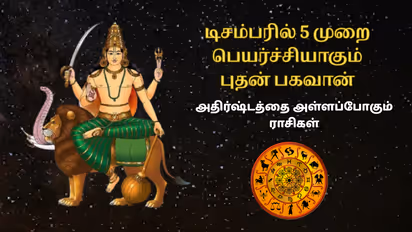 டிசம்பர் 6, 2025 புதன் பகவான் விருச்சக ராசிக்குள் நுழைய இருக்கிறார். இதற்கு முன் அவர் துலாம் ராசியில் வக்ர நிவர்த்தி அடைந்து விருச்சிக ராசிக்குள் செல்ல இருக்கிறார். அதேபோல் டிசம்பர் 28, 2025 புதன் பகவான் தனுசு ராசிக்குள் நுழைய இருக்கிறார். ராசியை மட்டும் அல்லாமல் மூன்று முறை நட்சத்திரத்தையும் மாற்றுகிறார். புதன் பகவான் டிசம்பரில் ஐந்து முறை தனது நிலையை மாற்றுவது சில ராசிக்காரர்களுக்கு அதிர்ஷ்டத்தை வழங்கவுள்ளது. அந்த ராசிகள் குறித்து இங்கு காணலாம்.