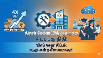 Budget 2026 மத்திய பட்ஜெட் 2026-ல் திறன் மேம்பாட்டுத் துறைக்கு ரூ.9,885 கோடி நிதி. பிஎம் சேது திட்டம் மூலம் ஐடிஐ-கள் நவீனப்படுத்தப்படும். முக்கிய அறிவிப்புகள் இதோ.
