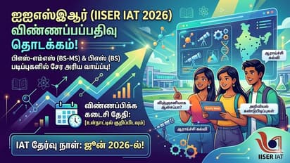 IISER IAT 2026 ஐஐஎஸ்இஆர் (IAT 2026) நுழைவுத் தேர்வுக்கான விண்ணப்பம் தொடங்கியது. தகுதி மற்றும் முக்கியத் தேதிகள் குறித்த முழு விவரங்களை இங்கே படிக்கவும்.