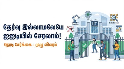 இந்திய தொழில்நுட்பக் கழகங்களில் (IIT) சேர வேண்டும் என்பது பல மாணவர்களின் கனவாக இருக்கும். பொதுவாக, ஐஐடி-யில் சேரக் கடுமையான ஜெஇஇ மெயின் (JEE Main) மற்றும் ஜெஇஇ அட்வான்ஸ்டு (JEE Advanced) நுழைவுத் தேர்வுகளில் வெற்றி பெற வேண்டும். ஆனால், இந்த நுழைவுத் தேர்வு மதிப்பெண்கள் இல்லாமலேயே ஐஐடி-யில் படிக்கும் வாய்ப்புகள் உள்ளன என்பது பலருக்குத் தெரிவதில்லை. டேட்டா சயின்ஸ், செயற்கை நுண்ணறிவு (AI), ரோபோட்டிக்ஸ் போன்ற நவீன தொழில்நுட்பப் பாடங்களை ஐஐடி-கள் குறுகிய கால மற்றும் சான்றிதழ் படிப்புகளாக வழங்குகின்றன.