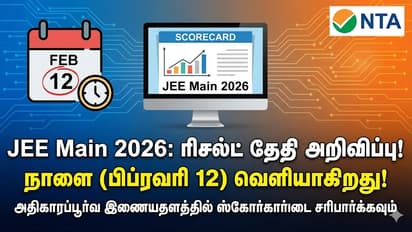 JEE Main பிப்ரவரி 12-ல் ஜெஇஇ மெயின் 2026 தேர்வு முடிவுகள் வெளியாகிறது. jeemain.nta.nic.in தளத்தில் ஸ்கோர்கார்டை டவுன்லோட் செய்யும் முறை மற்றும் நேரம் இதோ.