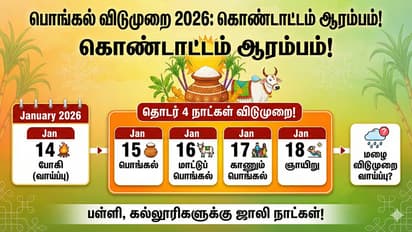 வழக்கமாக பொங்கல் பண்டிகைக்கு 3 நாட்கள் விடுமுறை அளிக்கப்படும். இந்த முறை ஜனவரி 15 (வியாழன்) முதல் ஜனவரி 17 (சனி) வரை அரசு விடுமுறை உள்ளது. அதனைத் தொடர்ந்து ஜனவரி 18-ம் தேதி ஞாயிற்றுக்கிழமை என்பதால், பள்ளி மற்றும் கல்லூரி மாணவர்களுக்குத் தொடர்ந்து 4 நாட்கள் விடுமுறை உறுதியாகியுள்ளது. அரையாண்டுத் தேர்வு முடிந்து ஜனவரி 5-ம் தேதி தான் பள்ளிகள் திறக்கப்பட்ட நிலையில், மீண்டும் ஒரு நீண்ட விடுமுறை கிடைப்பது மாணவர்களை மகிழ்ச்சியில் ஆழ்த்தியுள்ளது.