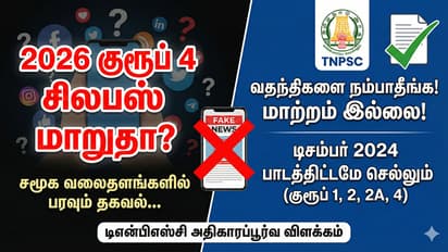 இந்த வதந்திகளுக்கு முற்றுப்புள்ளி வைக்கும் வகையில் டிஎன்பிஎஸ்சி அதிகாரப்பூர்வ விளக்கத்தை அளித்துள்ளது. அதன்படி, 2026-ல் நடைபெறவுள்ள குரூப் 1 (Group I), குரூப் 2 (Group II), குரூப் 2ஏ (Group IIA) மற்றும் குரூப் 4 (Group IV) ஆகிய தேர்வுகளுக்கான பாடத்திட்டத்தில் எந்த மாற்றமும் இல்லை என்று திட்டவட்டமாகத் தெரிவித்துள்ளது.