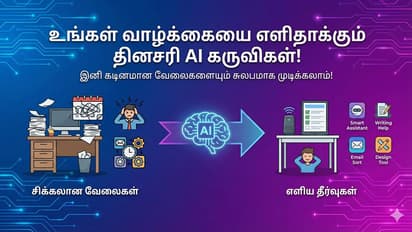 Everyday AI Tools உங்கள் வேலையை எளிதாக்கும் 9 சிறந்த AI டூல்ஸ் பற்றித் தெரியுமா? எழுத்து, டிசைன் மற்றும் ஆரோக்கியம் என அனைத்திலும் உதவும் AI தொழில்நுட்பம் இதோ.