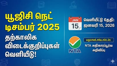தேசியத் தேர்வுகள் முகமை இன்று வெளியிட்டுள்ள அதிகாரப்பூர்வ அறிவிப்பின்படி, யூஜிசி நெட் டிசம்பர் 2025 தேர்வுக்கான தற்காலிக விடைக்குறிப்புகள் (Provisional Answer Keys) வரும் ஜனவரி 15, 2026 அன்று வெளியிடப்பட உள்ளன. தேர்வர்கள் என்டிஏ-வின் அதிகாரப்பூர்வ இணையதளமான ugcnet.nta.nic.in என்ற முகவரிக்குச் சென்று விடைக்குறிப்புகளைப் பார்வையிடலாம் எனத் தெரிவிக்கப்பட்டுள்ளது.