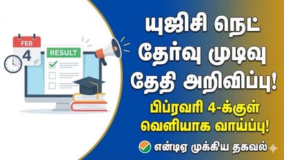 UGC NET யுஜிசி நெட் டிசம்பர் 2025 தேர்வு முடிவுகள் பிப்ரவரி 4, 2026 அன்று வெளியாகும் என NTA அறிவித்துள்ளது. ugcnet.nta.nic.in தளத்தில் முடிவுகளைக் காணலாம். யுஜிசி நெட் ரிசல்ட் தேதி இதுதான் - அதிகாரப்பூர்வ அறிவிப்பு இதோ!