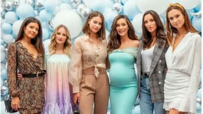 கோலாகலமாக நடந்த வளையக்காப்பில் துள்ளி குதித்து நடனமாடிய எமி ஜாக்சன்! வைரலாகும் புகைப்படங்கள்!