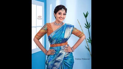 பச்சை நிற பட்டு புடவையில் போஸ் கொடுக்கும் நீலிமா