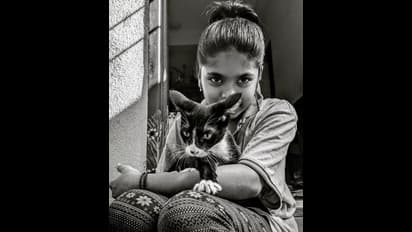 விலங்குகள் மீது அதீத பாசத்தோடு பூனையை கையில் பிடித்திருக்கும் பிரேம்குமார் மகள்