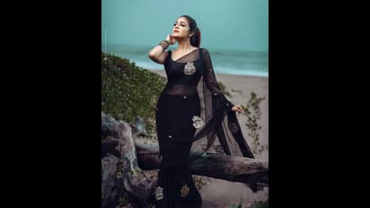 கருப்பு சேலையில் தாறு மாறு அழகி